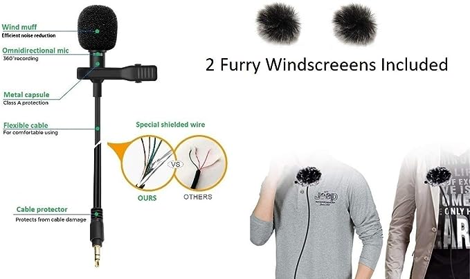 HIGH QUALITY DUAL MIC 2 LAVALIER MICROPHONE with Clip On: Noise cancelation dual lapel lavalier microphone: With omnidirectional condenser mic in external lapel lavalier dual microphone, it allows you to capture clear 360° sound around the microphone in comparison with built-in mic. The Dual 2 Lavalier Microphone can be used by 2 people at the same time. Take your audio recording to the next level!