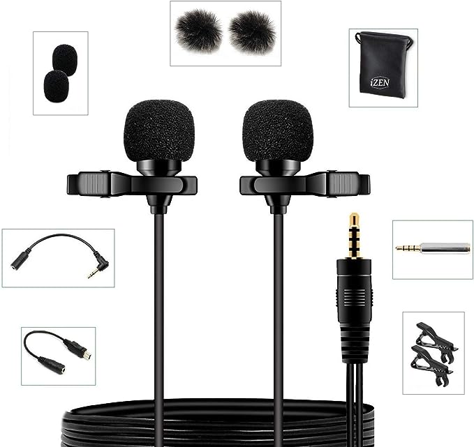 DOUBLE LAVALIER MICROPHONE with Clip-On Design: Our Double Microphone Mic is Lightweight, small and fashionable design. The iZEN Dual Mic with clip on allows you to easily clip the mic to your collar, tie or pocket.
