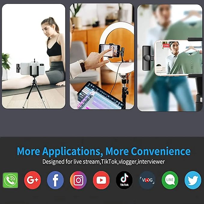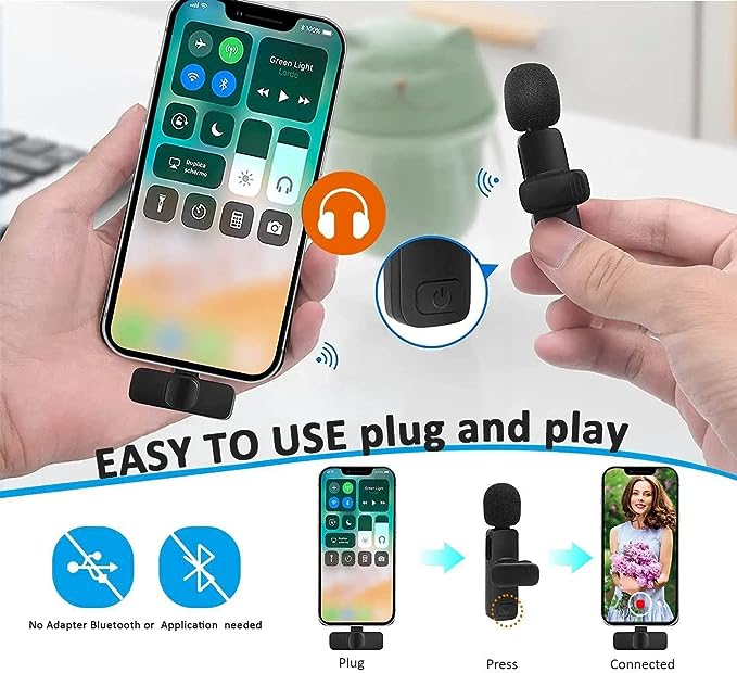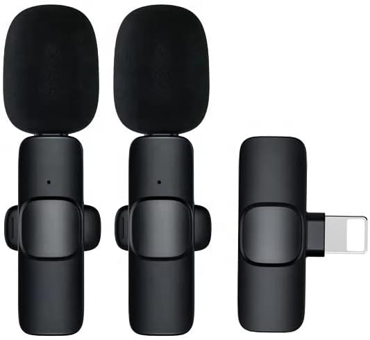 【PLUG & PLAY AND AUTO PAIRING】- No App or Bluetooth WiFi needed, The Profesional Dual Wireless Lapel lavalier iphone Microphone for voice recording its easy to set up. Just clip the wireless microphone to your collar and plug the wireless receiver on your iphone devices, they will automatically pair up quickly (green light on for long time means successful match). Our Mini Dual wireless Lavalier iphone Lapel Mic Microphone is perfect for voice recording or YouTube/Facebook Live Streaming, TikTok, Vlog, Blog, Podcast, Zoom, Interview and other video recording.