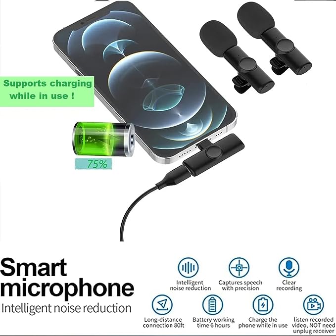 【UPGRADED CHARGING MODE/NOISE CANCELLATION】: You can charge your iphone while using the Dual Wireless iphone Microphone. Excellent noise cancellation,keep the vocals carried through clearly even amid outdoor surrounding sound disturbances. Our Noise Reduction Technology cuts off any noise interference while recording so as to ensure the sound quality. The Compact Mini Size dual wireless iphone lavalier microphone can easily clip on to your shirt, tie or pocket. Designed for Filmmakers, Vloggers, Mobile Journalists, Content Creators,Teacher etc,travel. Friendly for beginners.